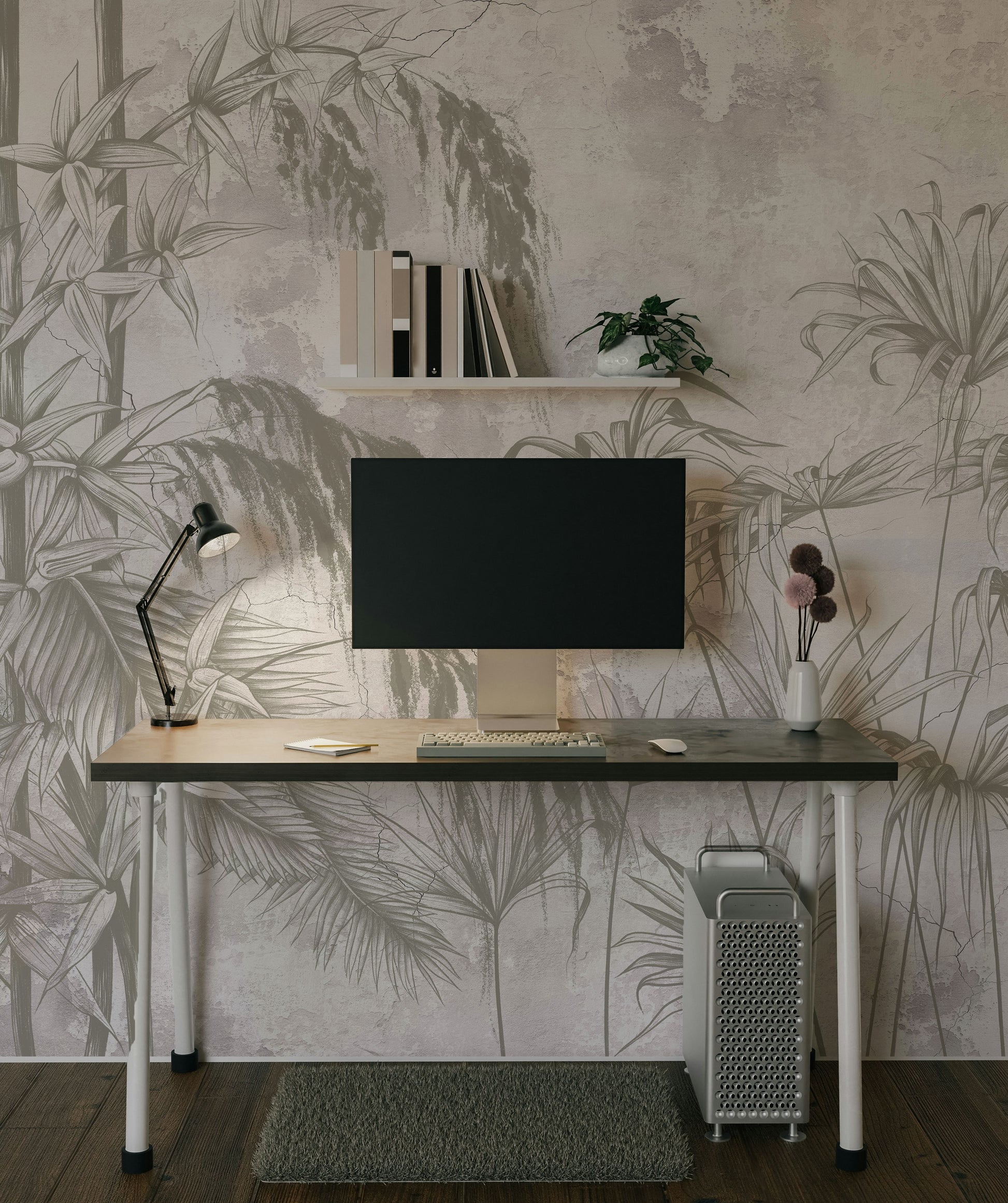 - Papel mural vinílico, texturado mate y lavable con paño húmedo.