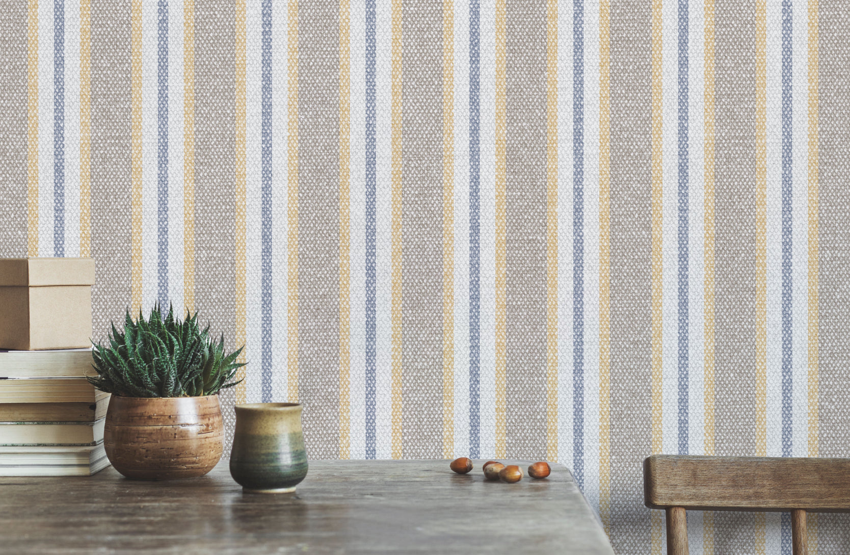 - Papel mural vinílico, resistente al roce, texturado mate y lavable con paño húmedo.
